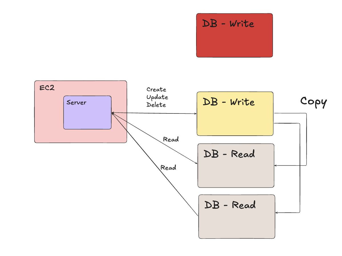 - 쓰기 DB에 작업을 했다면 읽기 DB로 복제해주는 시간이 필요하다. (복제 지연)