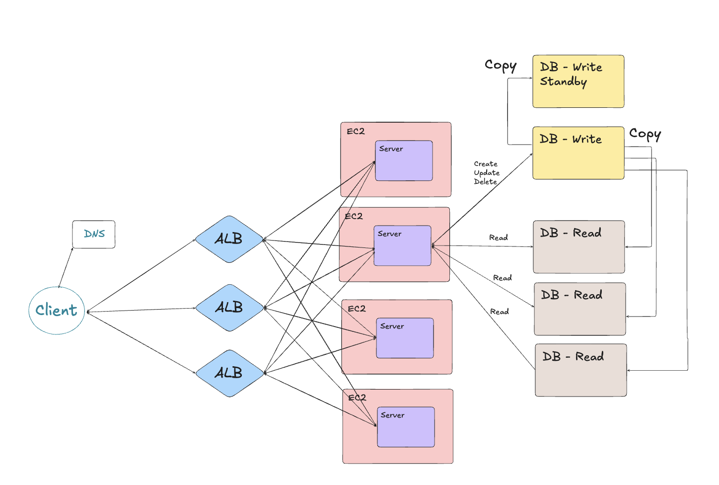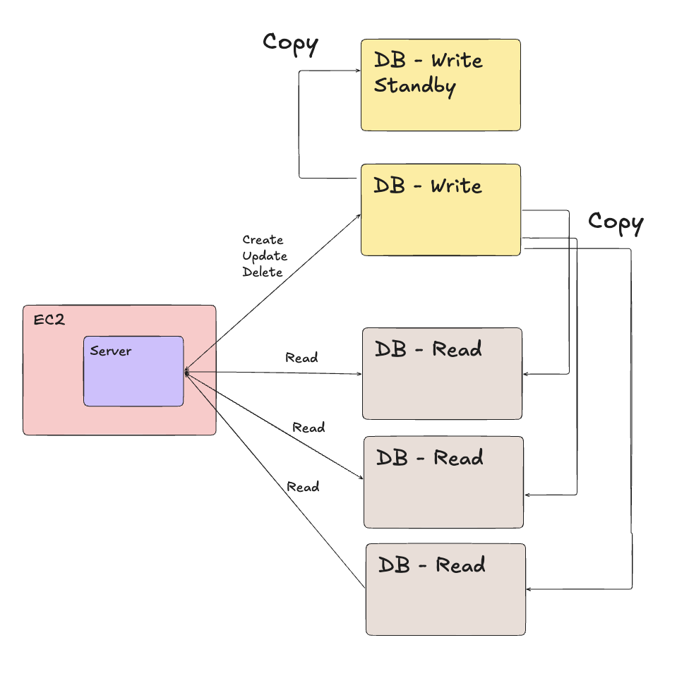 - 평소에 Standby DB는 유저의 트래픽을 아예 받지 않고, 오로지 Write DB을 복사하기만 한다. 만약 트래픽을 받는다면 유저의 트래픽과, Write DB의 복사 작업 사이에서 락, 자원 경합, 데이터 정합성 등의 문제가 날 수 있다.